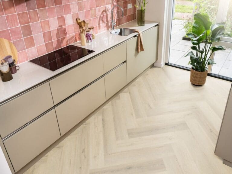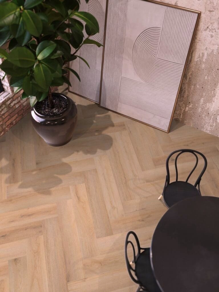 Visgraat Klik PVC Beige Eiken Met Geïntegreerde Ondervloer