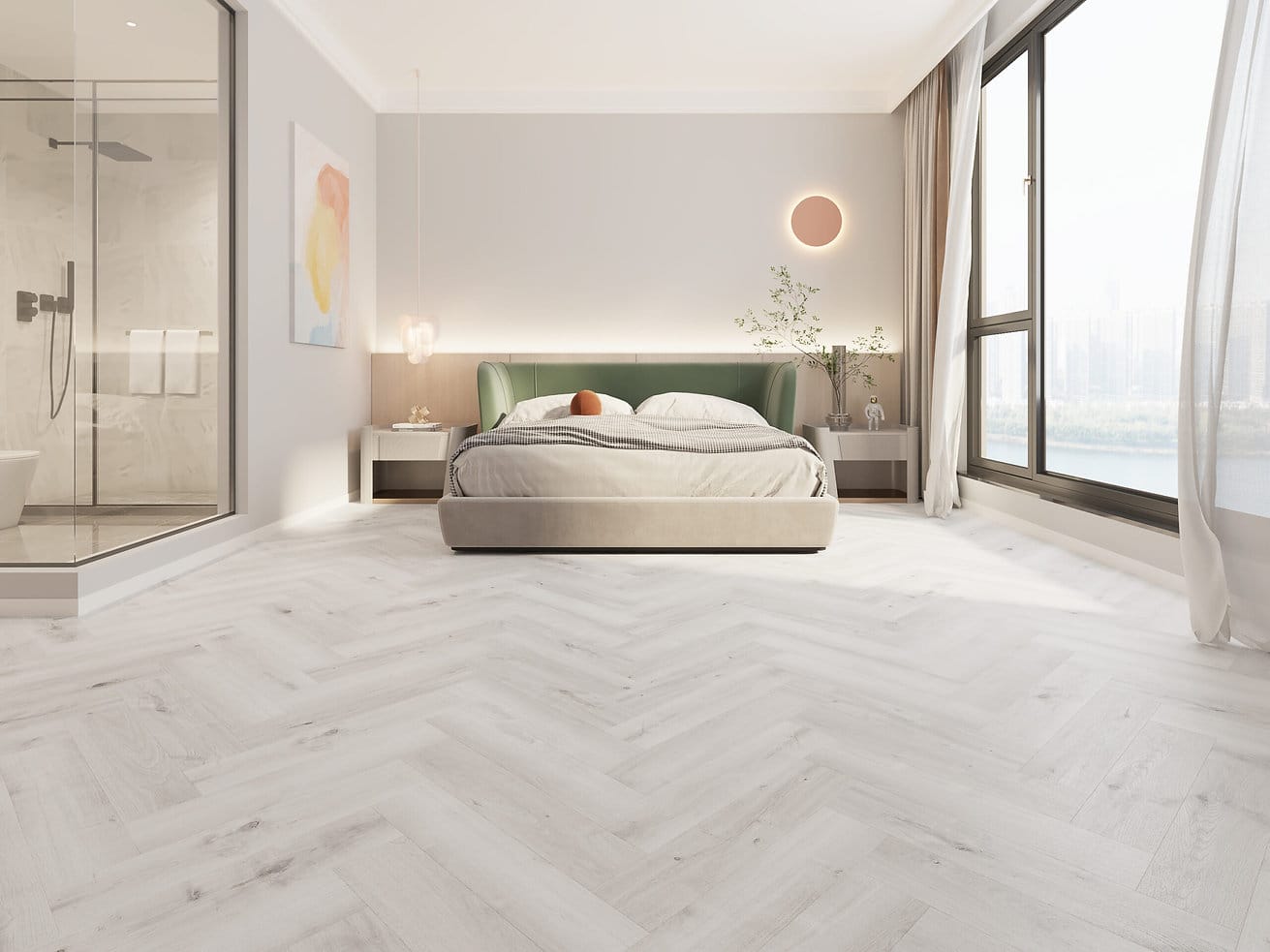 2in1 Visgraat Klik PVC Licht Grijs Met Geïntegreerde Ondervloer